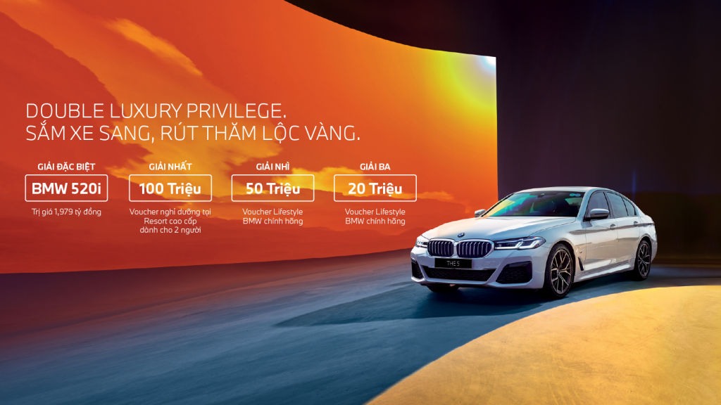 Từ nay đến hết tháng 12/2025, THACO AUTO triển khai chương trình “Sắm xe sang, rút thăm lộc vàng”, với cơ hội rút thăm may mắn để nhận các phần thưởng giá trị từ BMW. Cụ thể, 01 giải Đặc biệt là xe BMW 520i; 01 giải Nhất là kỳ nghỉ dưỡng cho 2 người tại resort 5 sao trị giá 100 triệu đồng; 01 giải Nhì và 01 giải Ba là voucher lifestyle trị giá 50 triệu đồng và 20 triệu đồng. Chương trình áp dụng cho khách mua các dòng xe BMW Z4, 4 series, 5 series (G30), 7 series, X4, X5, X6, X7, BMW XM, BMW M, i4, iX3 và i7.